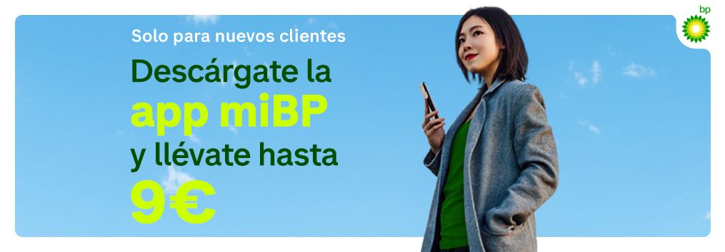 ** Condiciones legales: Promoción aplicable a nuevos miembros de programa miBP, que se registren en el programa por primera vez a través de app o registren una nueva tarjeta física a través de la web o app. El cliente solo podrá canjear en ahorro miBP el 20% del valor de su repostaje en (independientemente del tipo de carburante). 5€ de bienvenida se cargan en la cuenta miBP a los clientes una vez se hayan registrado en el programa miBP + 2€ que se cargarán en su segundo repostaje + 2€ que se cargarán en su tercer repostaje. Consulta el texto completo de las Bases Legales de esta promoción. Resto de condiciones aplicables al ahorro miBP en los T&C miBP Términos y Condiciones miBP. En el caso de que bp o cualquier empleado de la estación detecten cualquier anomalía o existan motivos para considerar que un participante está impidiendo el normal desarrollo de esta, no cumple con las condiciones o está llevando a cabo un procedimiento fraudulento, podrá ser eliminado de la Promoción y, en su caso, anulado el Premio que hubiera podido conseguir o el cajero no aceptará el premio en la caja. BP se reserva el derecho de eliminar de la Promoción a cualquier Participante que evidencie o del que se tengan razones fundadas para considerar que está cometiendo actuaciones irregulares en el sentido antes descrito. BP se reserva el derecho a dar de baja y expulsar automáticamente a cualquier Participante del que estime que realiza un mal uso o abuso de la Promoción, con la correspondiente cancelación de su participación. Se entiende como mal uso, con carácter enunciativo y no excluyente, el incumplimiento de cualquier condición de participación incluida en estas Bases Legales.
